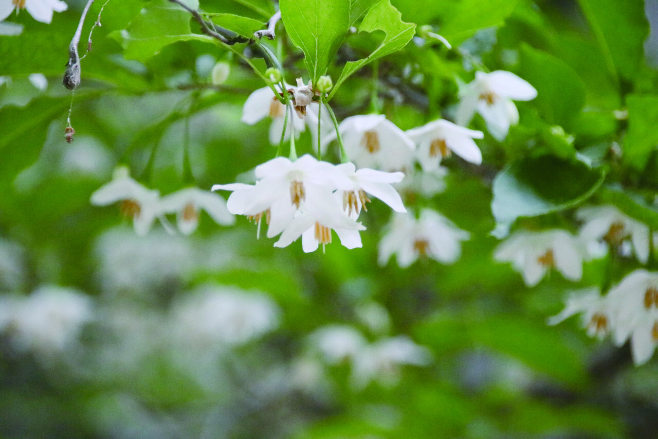 이 나무의 꽃은 종 모양의 하얀 꽃으로, 긴 화경에 달려 있습니다. 보통 2~5송이씩 모여서 늘어지며, 이는 마치 눈이 내리는 모습을 연상케 합니다. 때죽나무의 꽃은 봄에서 초여름까지 아름다움을 선사하며 이 시기에는 많은 이들에게 사랑받습니다.