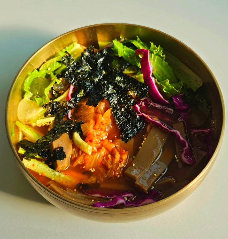 - 김치: 묵의 고소함과 매력을 더하는 김치는 기본적으로 섞여있는 양념이 강하지 않은 것이 좋습니다. 가위로 적당히 잘라서 넣으면 빠르고 간편하게 사용할 수 있습니다.