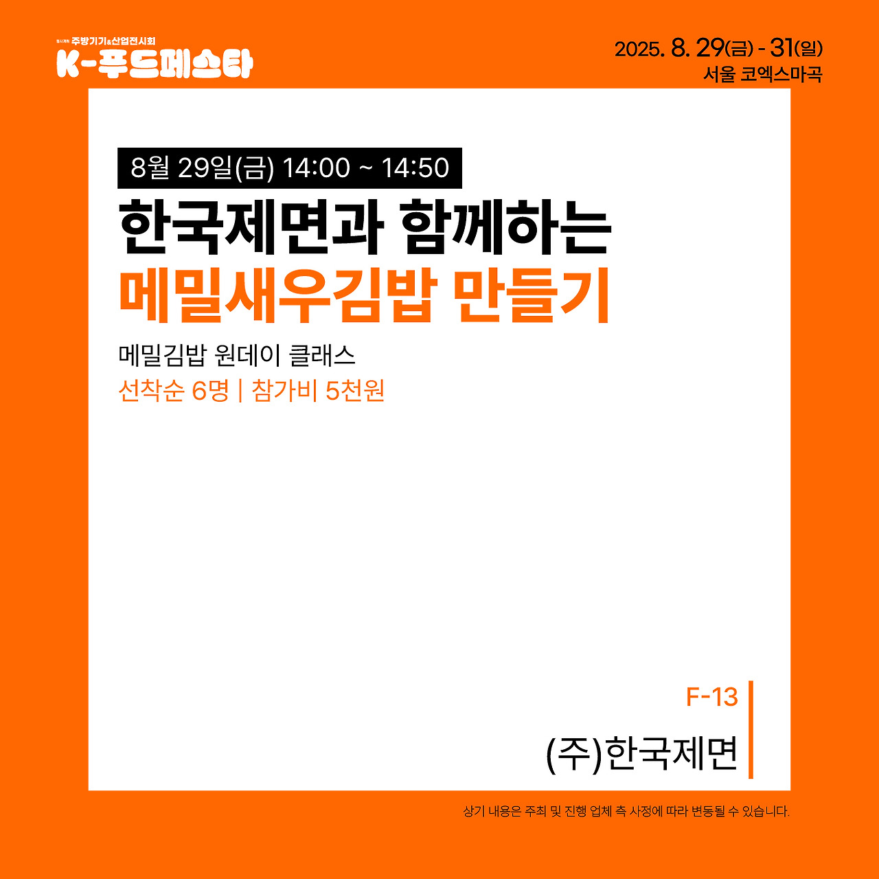 K-Food Festa는 다양한 음식 문화를 즐길 수 있는 기회를 제공합니다. 많은 관심과 참여를 바랍니다!
